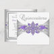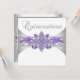 Hermosas invitaciones de fiesta de Quinceañera moradas con plata y lavanda con elegantes joyas moradas con plata sobre un elegante fondo plateado y blanco. Este diseño elegante de Quinceañera puede ser fácilmente personalizado para su fiesta o evento. Este es un diseño impreso sin joyas reales.