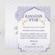 Comparte momentos de Iftar con tus seres queridos utilizando estas hermosas tarjetas, diseñadas para agregar un ambiente cálido y alegre a tu mesa de Ramadán. Adornadas con patrones de luna creciente y estrellas y colores vibrantes de Ramadán, hacen una encantadora invitación para todos los familiares y amigos.