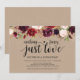 Esta tarjeta de invitación con tema floral de Borgoña rústica es perfecta para la celebración de su recepción / fiesta de boda. Agregue sus datos en fuente / letra negra a juego.
