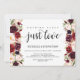 Esta tarjeta de invitación temática floral de borgoña rústica es perfecta para la celebración de su recepción / fiesta de boda. Agregue sus datos en fuente / letra negra a juego.