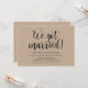 Esta tarjeta de invitación temática de boda y fuga con kraft rústico es perfecta para la recepción de su boda y la fiesta de celebración posterior a la boda. Agregue sus datos en fuente / letra negra coincidente.