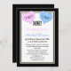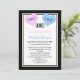 Esta divertida invitación de recepción de boda posterior es para la divertida pareja. La invitación presenta un corazón rosa y un corazón azul con las palabras "ME CASO" dentro de ellos y la palabra "HECHO" entre los dos corazones. La invitación está bordeada en negro y crema con las palabras de la invitación que aparecen en un fondo blanco. Los detalles importantes de la invitación posterior a la boda se pueden personalizar por usted. Esta es una invitación moderna y divertida y posiblemente incluso humorística o divertida que a sus invitados les encantará recibir. Copyright henishouseofpaper
