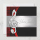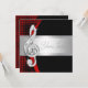 Elegante plantilla de invitación a recital de música plateada en rojo y negro. Esta elegante invitación a evento musical de clave de sol en rojo y negro funciona para una invitación a concierto, recital de piano, invitación a sinfonía o cualquier otra actuación musical. Para personalizar para su evento, simplemente elija el botón "¡Personalízalo!" para comenzar a agregar los detalles de su evento, estilo de fuente, tamaño y color de fuente, y redacción. Tenga en cuenta que todos los diseños de invitaciones que encontrará en Zazzle son gráficos impresos en papel plano sin partes o piezas elevadas o añadidas.