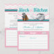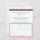 Cute y modernas invitaciones de Regalo para la Cocina para Despedida de Soltera diseñadas en rosa, turquesa y gris con un patrón de chevron, impresas a medida con los detalles de la Despedida de Soltera de la Novia, e incluye una Tarjeta de Receta (aprox. 3" x 5") para que tus invitados la rellenen y separen (no perforada) y la traigan a tu celebración como regalo.
