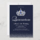 Invitaciones de Saphire Quinceanera. Diseñado con chispas, purpurina plateado, una corona de plata con acentos de zafiro para una fabulosa Quinceañera, 15 años. Esta invitación hecha para adolescentes, esta purpurina plateada Quinceanera será una fabulosa introducción a su día especial. En la tienda Metro-Events Zazzle y Metro-Event.com encontrará suministros adicionales de fiesta de Quinceanera.