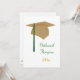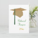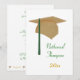 Pintura de un gorro de graduación de oro y de un tono verde impreso en invitaciones que se van a personalizar en línea, antes de la compra. Cambie el texto de los formularios de plantilla o, para realizar más cambios, haga clic en Personalizar.