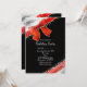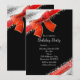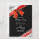 Invitaciones de vacaciones negras chic con lazo rojo y destellos. Personalice para cualquier evento.