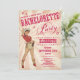 Estas invitaciones del fiesta del bachelorette de la vaquera son pálidas - rosa con un viejo diseño occidental retro del estilo. Ofrecen un texto adaptable rojo de la vaquera y de la frambuesa del vintage. El título lee: "Ensíllenos para arriba y únase a para un fiesta del bachelorette".