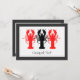 Estas invitaciones elegantes del fiesta de la ebullición de los cangrejos/de la langosta harán su acontecimiento un golpe. Las invitaciones ofrecen un diseño limpio de 2 cangrejos/siluetas rojos y un negros de la langosta en el sihouette delantero y rojo de los cangrejos/de la langosta en la parte posterior, rodeado todo por una frontera del negro del carbón de leña en ambos lados. ¡Todo el texto en las invitaciones se puede modificar para requisitos particulares usando la plantilla, haciendo que estas invitaciones convenientes para todos sus cangrejos/langosta hierven celebraciones!