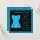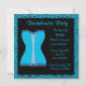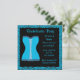 Invitación a una fiesta de soltera azul y negra con correspondencia entre escritura y corsé con guarnecido de leopardo