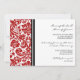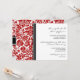 Invitaciones de la fiesta de compromiso en elegantes tonos rojos, negros y blancos clásicos y en moda de adamascado floral. personalizable completo con los detalles de su parte de compromiso. También disponible en una amplia gama de productos bodas a juego.