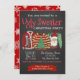 Famosos Navidades de suéter invitan a una fiesta con tres suéteres muy feos en una pizarra y fondo de copos de nieve. Usted puede fácilmente personalizar estas divertidas invitaciones de fiesta de Navidades suéter para su evento simplemente agregando sus detalles en el estilo de letra y color que prefiera.