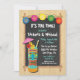 Divertido y festivo con un toque retro. ¡Celebren a la nueva pareja con un fiesta de tiki luau! Ideal para una ducha en pareja, un nuevo hogar, cena de ensayo, boda de destino o cumpleaños. Cuenta con una gran taza de tiki, marco de bambú, fondo de madera y un centro de pizarra para la información del fiesta. Ilustracion dibujado a mano por McBooboos