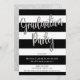 Invitaciones del purpurina y de la fiesta de graduación de las rayas. Celebre a su graduado con este chispear, purpurina, e invitación moderna rayada de la fiesta de graduación. Creado con los acentos de plata del purpurina, esta invitación de la graduación con brillo en sus manos de la huésped sobre la recepción de él. Las fuentes de coordinación del fiesta están disponibles en la tienda de MetroEvents en Zazzle. Las invitaciones adicionales de la fiesta de graduación están disponibles en Metro-events.com.