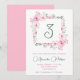 Invitaciones elegantes de 3er cumpleaños Floral Rosa caligrafía tipografía femenina clásica acuarela botánica celebración moderna