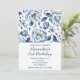 Invitaciones elegantes de cumpleaños número 3 Floral Vintage Acuarela rústica azul