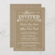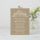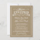 Invitaciones rústicas del boda del país del estilo del vintage -- Swirly, volutas rizadas y tipografía de la viejo-moda en fondo natural de la arpillera del ecru de la harina de avena con adorno floral del Victorian del siglo XIX hermoso. Apenas añada los nombres de novia y del novio y sus propios detalles del boda para crear la mirada de invitaciones de lujo en un precio asequible. Caligrafía elegante de la escritura mezclada con vieja anunciar-mirada de la prensa de copiar de la moda de la tipografía retra y la frontera llana del poster-estilo. Perfeccione para los bodas formales de la iglesia o los bodas rústicos románticos del jardín del país con un tacto de diseñar sofisticado moderno de moda para los pares tradicionales. La plantilla fácil de utilizar se puede modificar a la habitación su gusto. Haga clic el personalizar él para cambiar el tipo estilo y tamaño de fuentes. Éntrenos en contacto con por favor para la ayuda con el arreglo para requisitos particulares si usted necesita el sitio adicional para sus detalles del boda. Otros tamaños y estilos de la pizarra disponibles, junto con favores nupciales de la ducha, accesorios de los efectos de escritorio y esencial de lujo del equipo que se casa para las novias diy en un presupuesto.