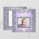 Elegante plantilla de invitación para bautizo con remolinos gris plateado y lavanda púrpura. Esta hermosa invitación para bautizo blanca, púrpura y gris se personaliza fácilmente para tu bautismo, bautizo, primera comunión u otro evento religioso simplemente eligiendo el botón "Personalizar" para comenzar a agregar tu foto y detalles del evento, estilo de letra, tamaño y color de letra, y texto. Tenga en cuenta que todos los stickers, tarjetas y diseños de invitaciones que encontrarás en Zazzle son gráficos impresos sin joyas, lazos, partes o piezas añadidas, realzadas o en relieve.