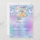 Invitación elegante de baby shower de sirena con adorable sirenita rubia con concha de caracol en un hermoso fondo floral pastel. Esta linda invitación de baby shower de sirena se personaliza fácilmente para su evento simplemente agregando los detalles del evento.