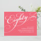 Esta 80.a invitación elegante del cumpleaños tiene un diseño moderno del rosa fuerte y blanco, y es completamente adaptable. Un grande invita para un fiesta formal o casual.