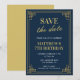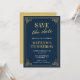 Invitaciones elegantes para cumpleaños número 7 de hombres Guardar la fecha Azul marino dorado chic moderno