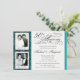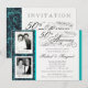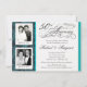 Invitaciones de aniversario de boda elegantes: cambie el número para cualquier año que se celebre. Borde de damasco azul pavo real con 2 insertos de fotos para "entonces y ahora" con letras de estilo vintage y acentos retro. Fácilmente personalizables y únicos gracias a usted. Simplemente cargue sus fotos y agregue los nombres, la fecha y los detalles para su celebración de aniversario especial. Perfecto para enmarcar como regalo. **NOTA: Tamaño para tarjetas de invitación GRANDES de 6,5 x 8,75 pulgadas. Haga clic en "Personalizar" para cambiar el tamaño y el tipo de fuente. Otros tamaños y estilos disponibles en la galería. © Teri Francis. Estampillas a juego y tarjetas de agradecimiento disponibles a petición.