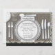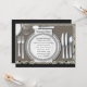 Preciosa y elegante mantelería de damasco negro y cubertería de plata en la invitación para la cena de ensayo de boda. Puede personalizar fácilmente esta elegante invitación para la cena de ensayo con los detalles de su evento en el estilo de letra, color y redacción de su elección.