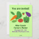 Con verduras alegres hechas por vectores, incluyendo zanahoria, guisantes, rábano, pimienta, berenjena y tomate, esta invitación sería una gran manera de promover un puesto de producción, mercado de agricultores, feria de condado u otro evento agrícola.