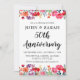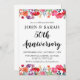 Celebra tu aniversario de oro con estilo con nuestras modernas invitaciones florales para fiestas de 50 años. Con elegantes flores acuáticas, este diseño es la combinación perfecta entre clásico y contemporáneo. Impresiona a tus invitados con esta sofisticada invitación mientras conmemoras 50 años hermosos con tu pareja amada.
