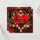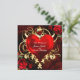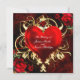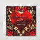 Invitaciones Florales Ornamentales Corazón Negro Rojo Dorado. Personalice para cualquier evento.