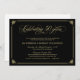 Invitaciones formales de 50 aniversario con un diseño de letra negro y dorado. Genial para una fiesta de aniversario de bodas de 50 años formal o una cena de aniversario. Personalice el texto de la plantilla con la información de su fiesta.