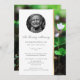 Elegantes invitaciones de anuncio de servicio conmemorativo dorado inspiradas en flores silvestres del bosque. Personalice con una foto de su ser querido y personalice fácilmente los detalles del funeral.