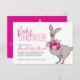 La fiesta de bienvenida al bebé linda invita, ofreciendo el canguro gris caprichoso lindo con los corazones rosados que riegan su bolsa. Personalice con sus detalles de la fiesta de bienvenida al bebé. Dibujo y gráfico y diseño únicos de Sarah Trett www.sarahtrett.com para www.mylittleeden.com