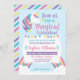 Sus huéspedes amarán estas invitaciones caprichosas de la fiesta de cumpleaños del unicornio. Características del este diseño lindas un unicornio, un arco iris, nubes y fuentes de la diversión. ¡Perfeccione para una fiesta de cumpleaños de la niña! Personalice fácilmente usando los campos en línea de la plantilla.