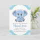 Celebre la llegada de su pequeña habitación con estas modernas y elegantes invitaciones a la ducha para bebés. Con un diseño elegante de elefantes azules, estas invitaciones son perfectas para una ducha de bebé de temática masculina o de género neutro.
