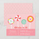 Esta moderna, contemporánea y colorida invitación a la fiesta de cumpleaños con tema de lollipop es un buen comienzo para una dulce celebración. Tiene caramelos de lollipop en varios colores brillantes y diseños como los remolinos. ¡Hay algo tan alegre con dulces y dulces! Un fondo rosa pastel y un patrón de puntos de polka en la página inversa hacen que esto sea más adecuado para chicas de cumpleaños. Personalice fácilmente los detalles de su fiesta.