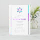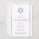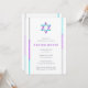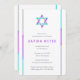 Las invitaciones del Bat Mitzvah son sencillas y modernas, con un diseño de Star of David con acentos morados, verde azulados y plateados. Personaliza en línea con tus detalles de Mitzvah.