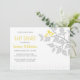 Invitaciones modernas para bebés con pájaro | Blanco gris amarillo | Puntos de Polka