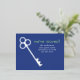 Anuncie su cambio de dirección con estas invitaciones clásicas y modernas que presentan un hermoso ilustracion vectorial de una clave de esqueleto vintage.