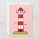 Invitaciones náuticas a la ducha de bebé| faro. Típicas invitaciones marítimas de color rosa con torre de la casa clara y dibujo personalizado de aves marinas. Diseño de ilustracion en la escena costera para recién nacida.