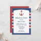 Invitaciones de la cena del ensayo de los azules marinos y del rojo con el ancla del corazón.