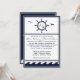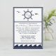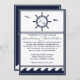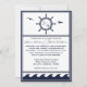 Invitaciones náuticas del boda de los azules marinos y del blanco - el diseño delantero se comprende de la rueda de una nave, gaviotas, cuerda, y en las olas oceánicas inferiores. Los diseños, el texto, y los esquemas en azules marinos con un fondo blanco. En la parte posterior es la rueda de una nave más grande con las ondas en la parte inferior que son blancas encima de un fondo de los azules marinos. El papel por abandono se fija a la acción básica de la invitación, pero se puede cambiar haciendo clic "elige su estilo" entonces usando el de papel cae abajo la selección una de la caja de las opciones. Cada invitación viene con un sobre blanco. Para cambiar la fuente, el tamaño de fuente, o el color de la fuente, hace clic el botón del personalizar debajo de la invitación náutica del boda. Nota usted puede tener que modificarla para requisitos particulares si cierta fraseología es demasiado larga y así que cabe el diseño mejor. Si su satisfecho con la disposición de la fuente, usted puede utilizar la característica de la personalización para cambiar la información de la demostración a sus detalles personales. Hacer clic las pequeñas imágenes del frente/trasero de la tarjeta con el cambio a ese lado así que a él puede ser alterada. Cuando está hecho el control la información que usted se aplicó está correcto y eso usted no tiene ninguna falta de mecanografíia a ambos lados de la tarjeta.