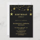 Invitaciones negras de cumpleaños 16 con Estrellas Doradas Cena de cumpleaños