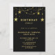 Invitaciones negras para cumpleaños 65 con estrellas doradas Cena de cumpleaños