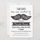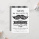 Invitaciones negras y blancas para baby shower de gemelos con bigote.