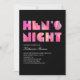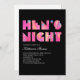 Invitaciones a la fiesta nocturna de Hen Modern con un diseño de color negro, rosa caliente, azul, amarillo y rojo. Para un brillo extra, elija papel metálico plateado.