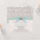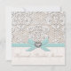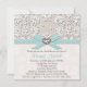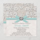 El cordón del vintage y la arpillera fina de lino miran invitaciones nupciales con un fondo antiguo sutil del damasco del Victorian y la aguamarina impresa acuña la cinta y arco azul, corazón impreso del diamante y del diamante de imitación y diseño de la perla. Esta invitación de la ducha del boda se puede personalizar con el nombre del acontecimiento en la parte de atrás de este elegante y delicado invite. Creado y diseñado por Chrissy H. Studios, LLC. Todos los derechos reservados.
