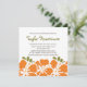 Estas invitaciones nupciales de la ducha del hibisco anaranjado bonito y moderno en las tonalidades del naranja, amarillas y verdes son perfectas para un Hawaiian, una ducha nupcial temática de la playa o del luau tropical o una ducha del boda. El frente y la parte posterior de esta invitación se pueden modificar para requisitos particulares con su propia fraseología. © Chrissy H. Studios, LLC de las ilustraciones. Todos los derechos reservados.