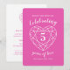 Invitaciones sencillas de aniversario de bodas de 5 años con corazón delineado y efecto de piedra con arte de línea en rosa y blanco. Personalice con los detalles de su fiesta de aniversario de bodas de 5 años. El aniversario de bodas de 5 años está asociado con gemas de tourmalina rosa y el corazón simboliza el amor. Gráficos y diseño de Sarah Trett para www.mylittleedenweddings.com en Zazzle.