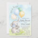 Invitaciones para baby shower de elefante niño con adorable elefante bebé con globos en un fondo de cielo y hierba en acuarela. Estas lindas invitaciones para baby shower de elefante niño se personalizan fácilmente para su evento simplemente agregando sus detalles.